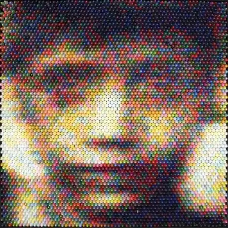 Майкл Джексон из пилюль Картина короля поп музыки создана из сотен капсул из под лекарств, отпускаемых по рецепту. Как мне кажется создатель мозайки Джейсон Мейсер выбрал пилюли не случайно, ведь известно ,что в последние годы Джексон прочно сидел на лекарствах. Впрочем портрет Джексона - это не единственная работа Джейсона, он спокойно делает подобные мозайки из недорогих материалов, которые найдутся в любом доме - фасоль, лапша, пряжа и леденцы.