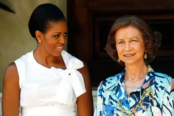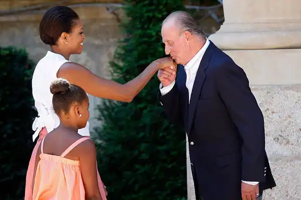 Во время частной поездки в компании дочери и старых друзей семьи Мишель Обама нанесла официальный визит пригласившим ее королю Испании Хуану Карлосу I де Бурбону (Juan Carlos I de Borbón y Borbón-Dos Sicilias), королеве Софии (Sofia) и принцессе Летиции (Letizia).