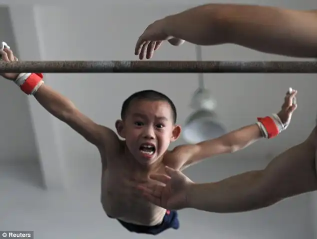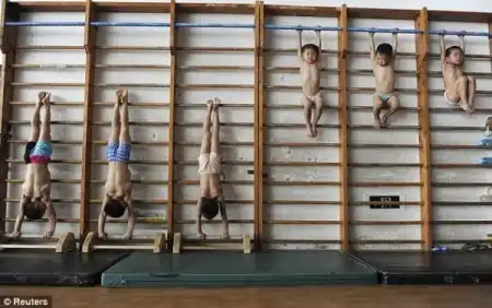 Китайские гимнасты от 4 до 7 лет на тренировке