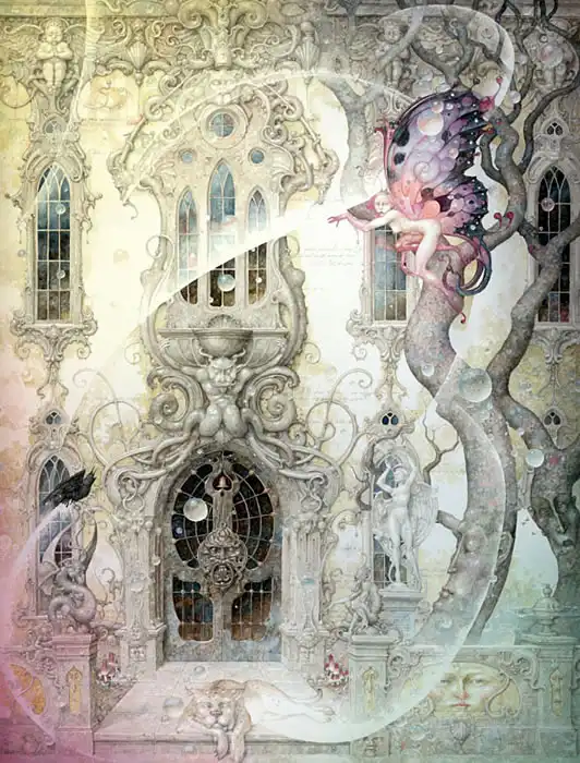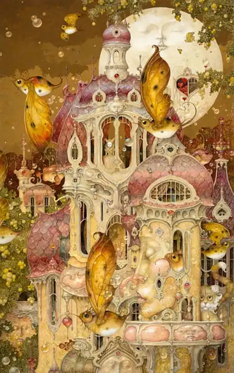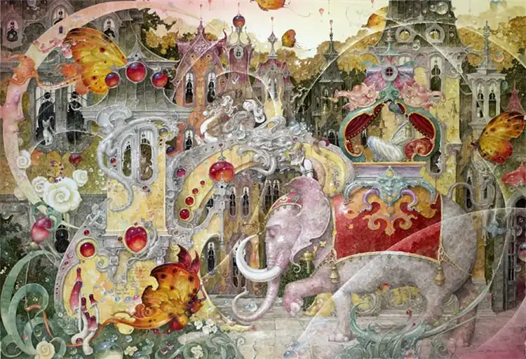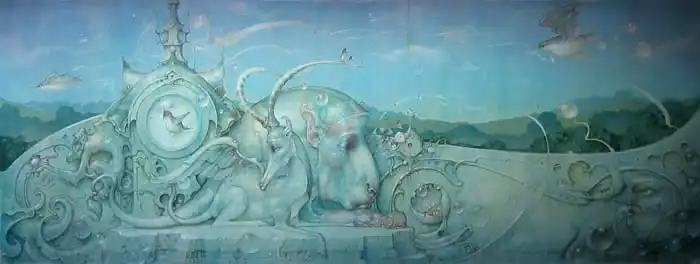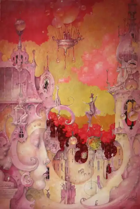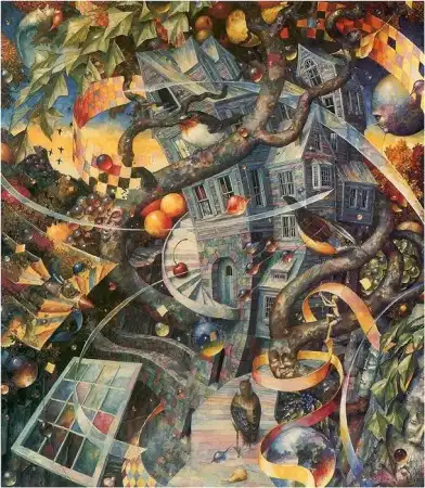 Картины Daniel Merriam - мечты в полном цвете, которые приглашают зрителя присоединиться к путешествию в воображение, где миры действительности и фантазии сталкиваются во взрыве цвета, форм и символики.