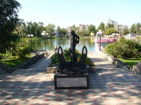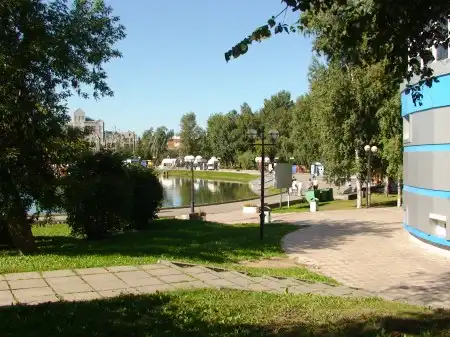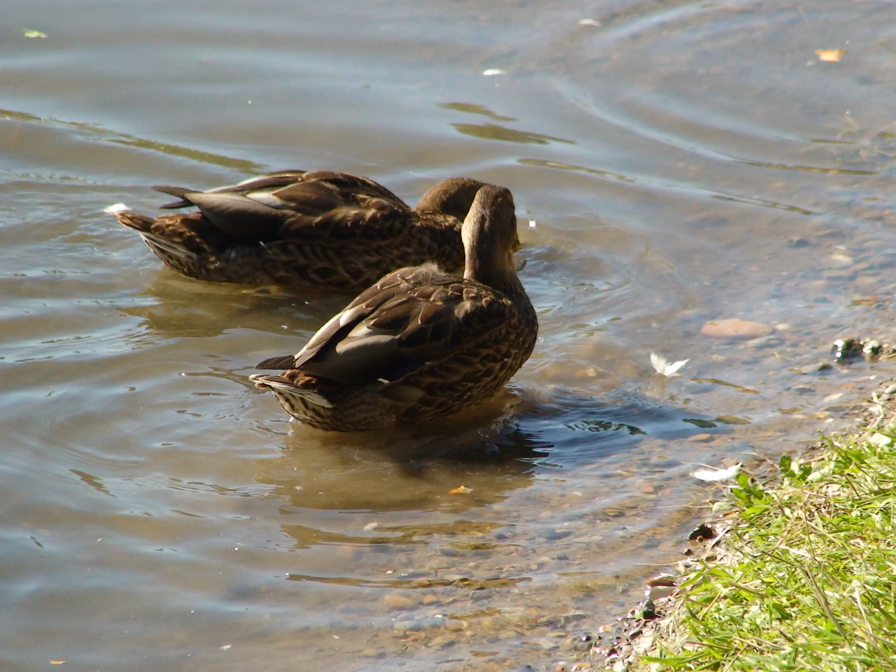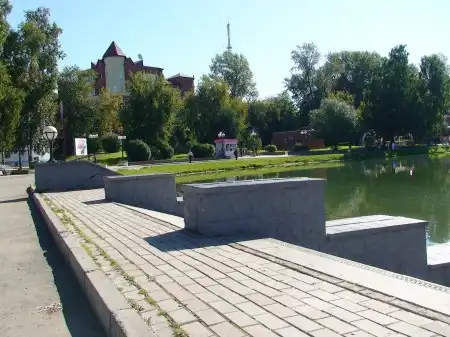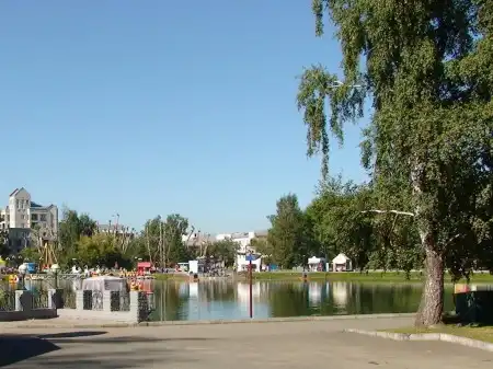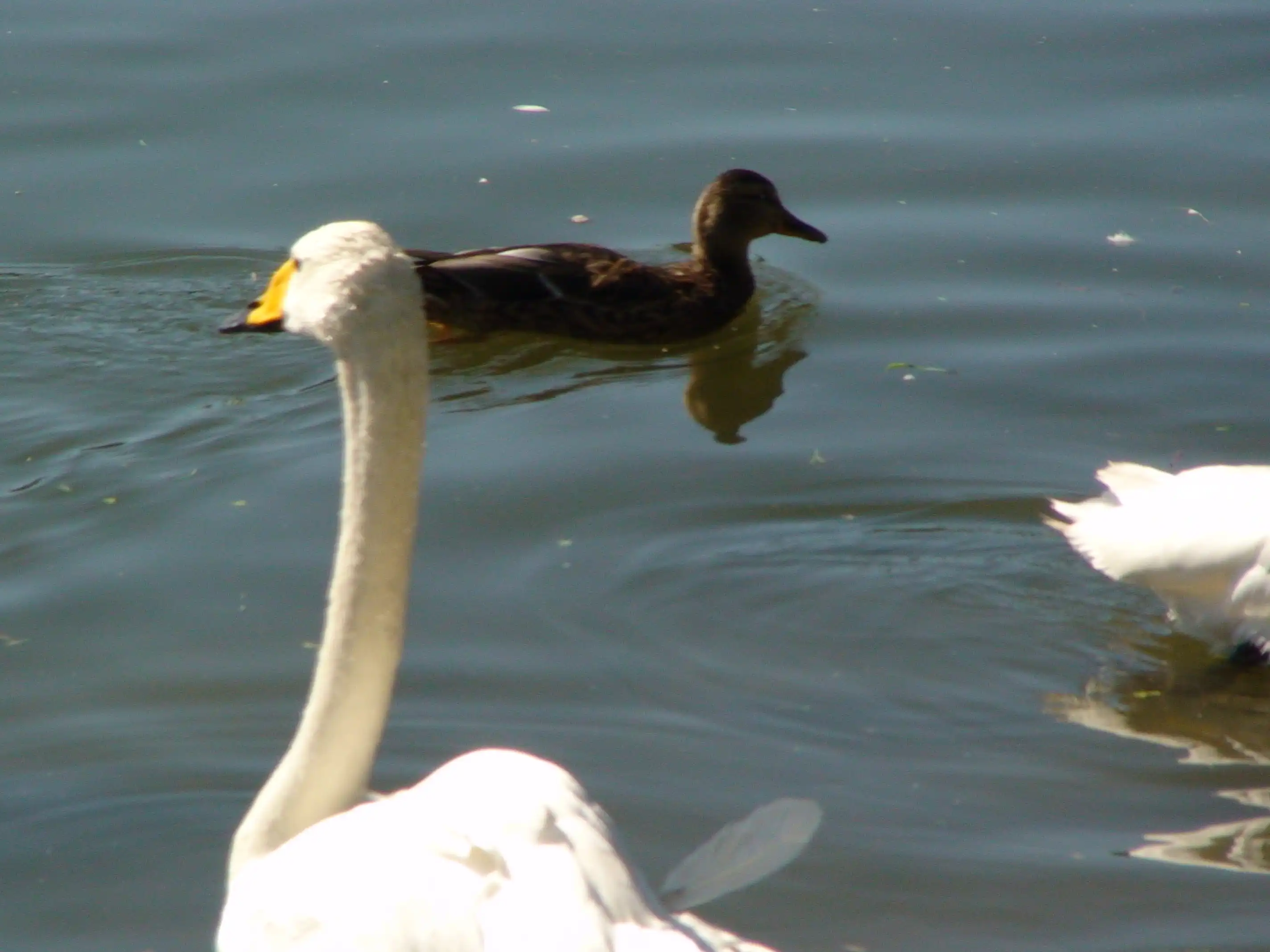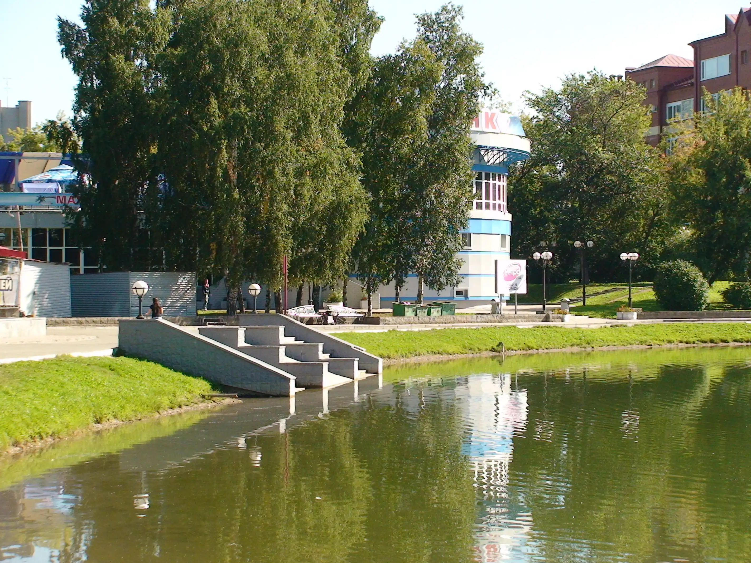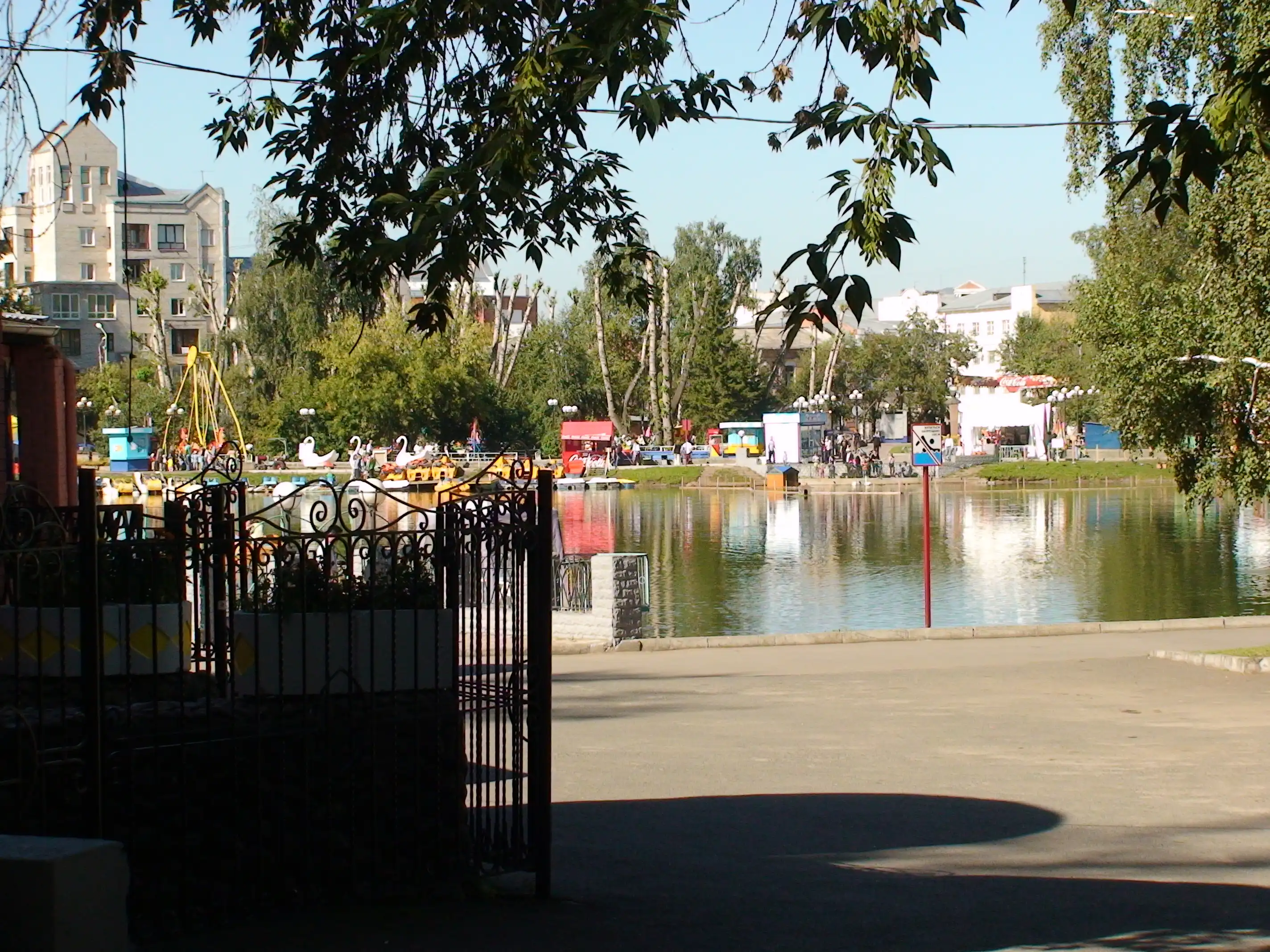 Заходим со стороны памятника Рукавишникову Н.Н., немного проходим вперед, и видим на воде птиц.