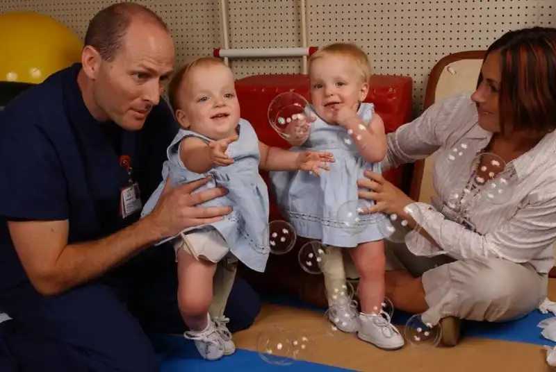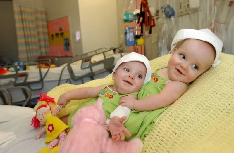 Семь лет назад Мэйси и Макензи Гаррисон родились сиамскими близнецами, сросшимися тазом. У них была общая третья нога и внутренности. У них также есть еще одна сестра, которая родилась нормальной. В сентябре 2003 года близнецов успешно разделили, и теперь они живут активной жизнью, ходят в спортзал, катаются на лошадях и т.д. Давайте посмотрим на их путешествие к нормальной жизни.