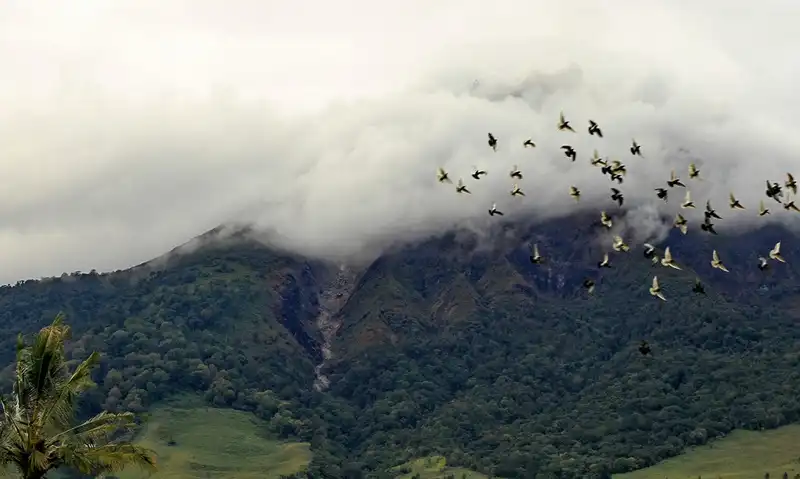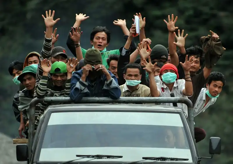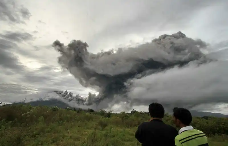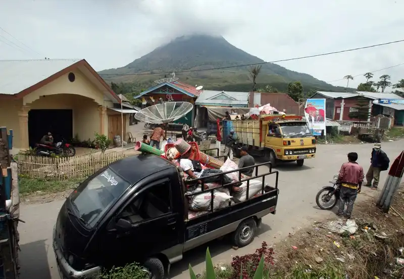 Индонезийский вулкан, спавший более четырехсот лет, в минувшую пятницу изверг новую порцию горящего пепла на высоту более трех километров, заставив испуганных жителей покинуть свои дома уже второй раз за неделю. Всю мощь извержения – пока что сильнейшего – можно было ощутить на расстоянии восьми километров от вулкана. «Это было ужасно, – вспоминает 37-летний Анто Сембиринг, все еще дрожа после того, как он выбежал из своей кофейни прямо в центре опасной зоны. – Все побежали как можно быстрее. Началась паника». Извержение вулкана Синабунг в воскресенье и понедельник заставило более 30 000 человек покинуть свои дома и искать приюта в близлежащих крупных городах.