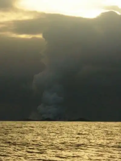 Потрясающие фотографии извержения вулкана в Тихом океане.