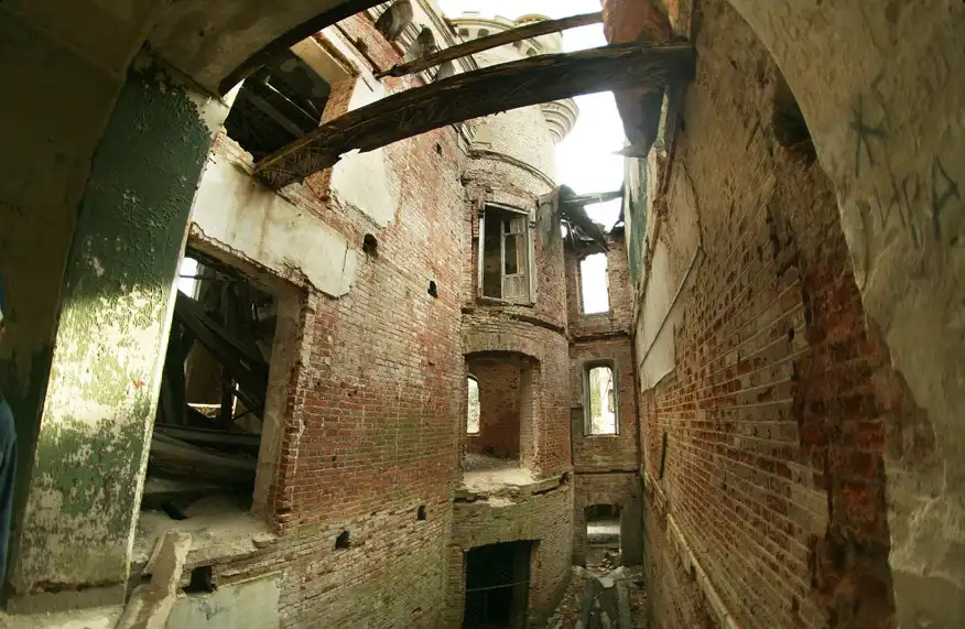 Пригласив через несколько лет французских друзей в свое имение, хозяин продемонстрировал удивленным гостям не просто замок, а «готический» дворец с парком и каскадом прудов у главного дома. Так возник этот великолепный ансамбль, поражающий и поныне своим размахом и удивительной свободой пространственного решения. Не поворачивается язык назвать это «эклектикой» (хотя этот термин прочно укоренился применительно к постойкам данной эпохи). Изощренность и даже причудливость композиции совершенно не разрушает целостность восприятия, наоборот, создает впечатление гармонии. Блестящие стилизации архитектора П.С.Бойцова, хотя формально и остаются в рамках эклектики, во многом близки только зарождавшемуся в то время модерну. В особенности это относится к стоящему чуть поодаль конному двору, или, лучше сказать, конному дворцу, поскольку по масштабу и репрезентативности это здание вполне может соперничать с главным усадебным домом..»