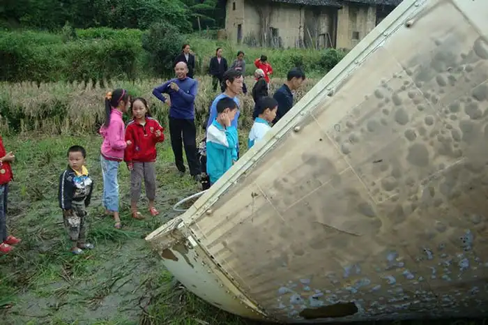 Это часть ракеты, которая выводила китайский спутник на орбиту.