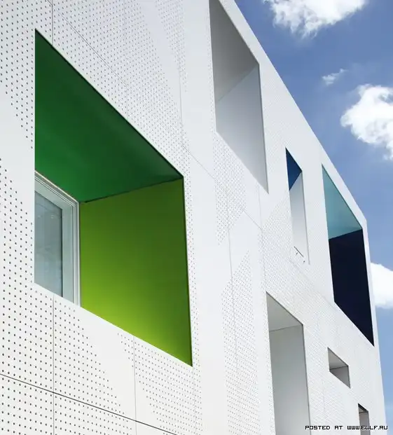 Разрушая все представления, дизайнерское бюро "Еmmanuelle moureaux architecture + design", представило нам яркое оформление банка Sugamo Shinkin Bank. Ослепительно белый фасад беспорядочно усеян большими и маленькими разноцветными окнами.