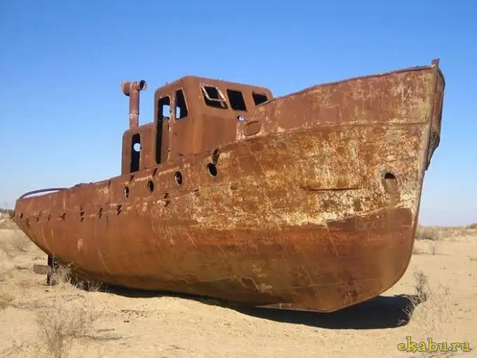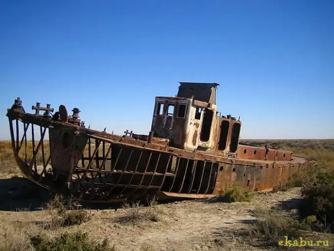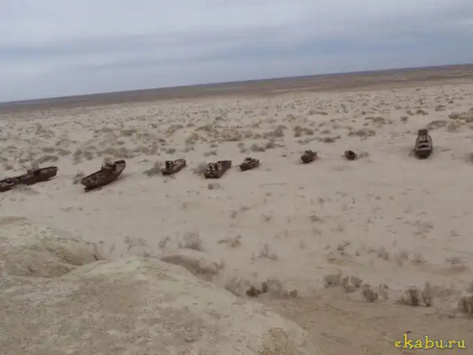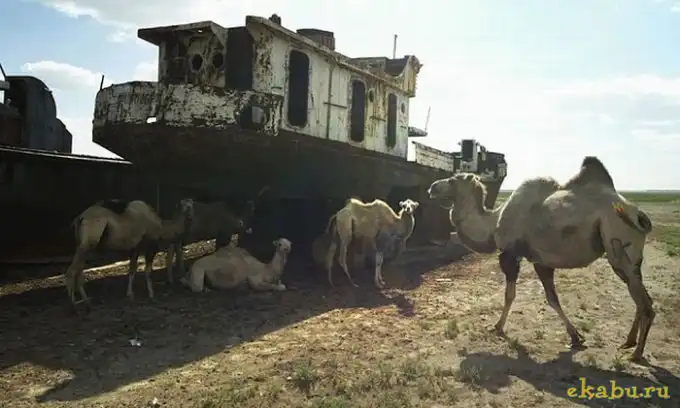 Аральское море было одним из самых крупных соляных озер в мире. Сейчас на его месте пустыня. Дело в том, что комсомольские стройки 60-х просто уничтожили его. Сегодня вы можете увидеть в этой рукотворной пустыне корабли и верблюдов.