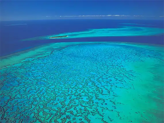 Большой Барьерный риф протянулся вдоль северо-восточного побережья Австралии на 2500 км. Это самая большая в мире экосистема со своим микроклиматом, нарушение которого может привести к исчезновению уникального памятника природы. Территория рифа охватывает около 2900 отдельных рифов, окруженных 540 барьерами, которые образуют прибрежные острова. Общая площадь Большого Барьерного рифа 348698 квадратных км.