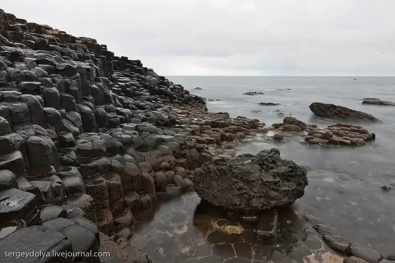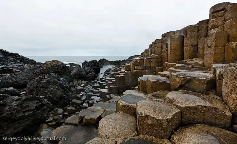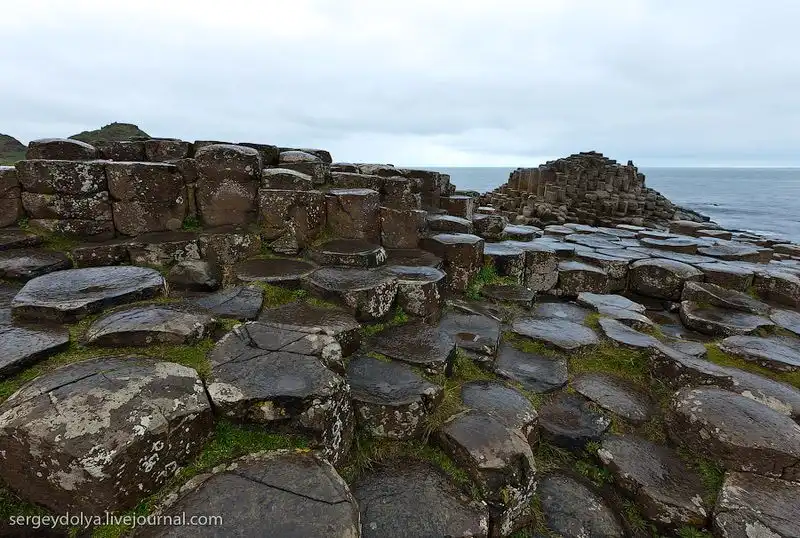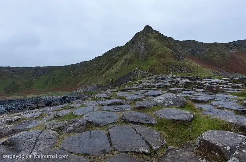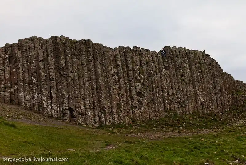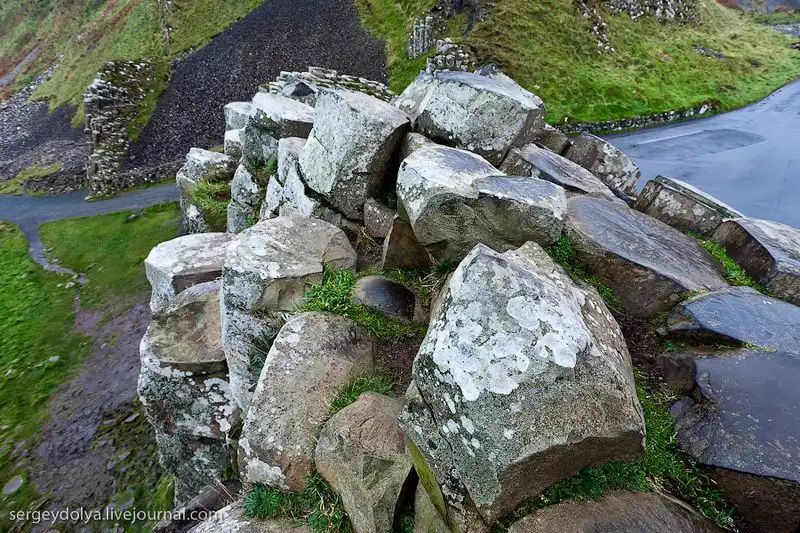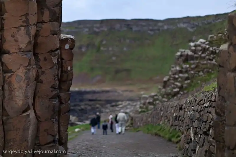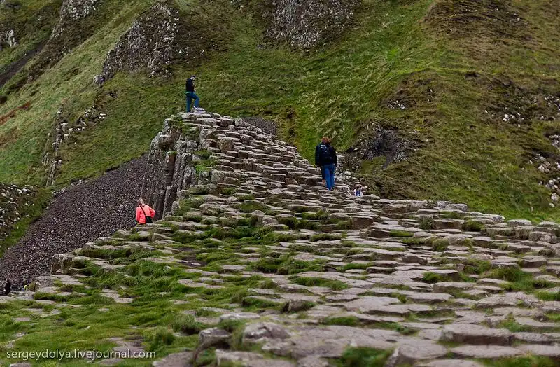 В стародавние времена в Ирландии жил добрый великан Фин Мак Кул со своей женой Уной, а через пролив от него, в Шотландии, жил злой великан Бенадонна. Шотландец постоянно задевал и обижал ирландца. В один из дней Фин Мак Кул крикнул Бенадонне: "Если бы я умел плавать то переплыл бы пролив за 2 минуты и навалял бы тебе по самое не балуйся!" Но плавать он не умел. Тогда ирландец решил построить мост через пролив. Семь дней и ночей он не смыкал глаз, таскал огромные каменные стержни в море и построил мост через пролив. Под конец он очень устал и подумал: "Прежде чем биться с Бенадонной я должен хорошенько отдохнуть" и пошел спать. В это время шотландский великан увидел мост и прибежал по нему в Ирландию. Он стал стучать в дверь к великану, но Фин Мак Кул крепко спал. Его жена Уна испугалась и придумала хитрость: она запеленала его, как младенца. Открыв дверь она сказала Бенадонне: "Тссссс! У меня младенец спит!" Шотландец посмотрел на "младенца" и подумал: "Если у Фин Мак Кула ребенок такой большой, то какой же он сам?" Испугавшись, Бенадонна убежал обратно в Шотландию, сломав за собой весь мост. До наших дней дошло только самое начало Моста Великанов, состоящее из шестиугольных базальтовых колон, которое является объектом всемирного наследия ЮНЕСКО и одним из чудес природы…