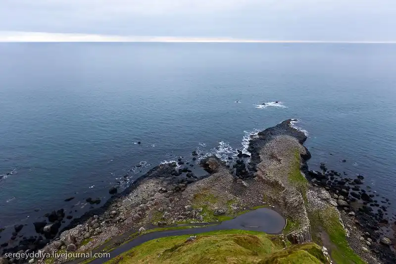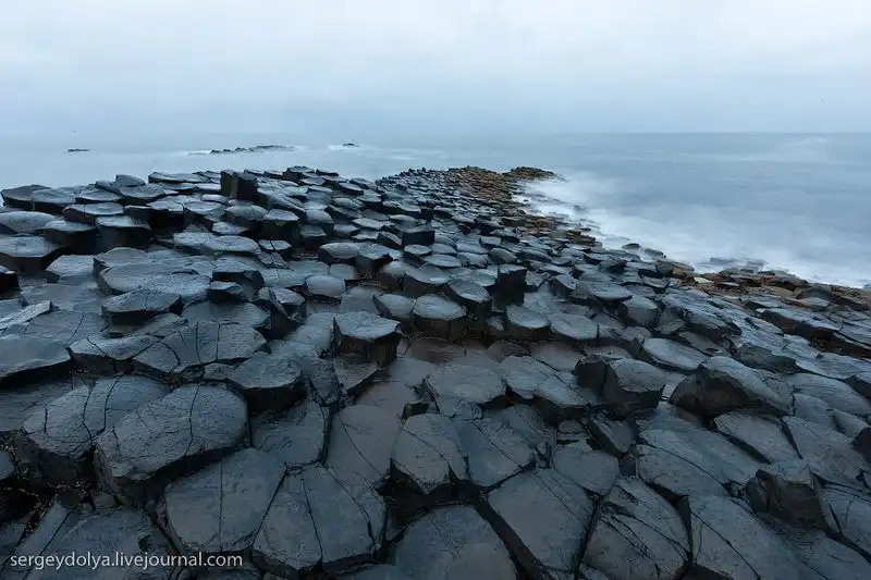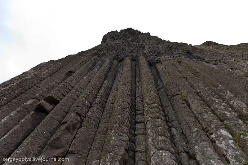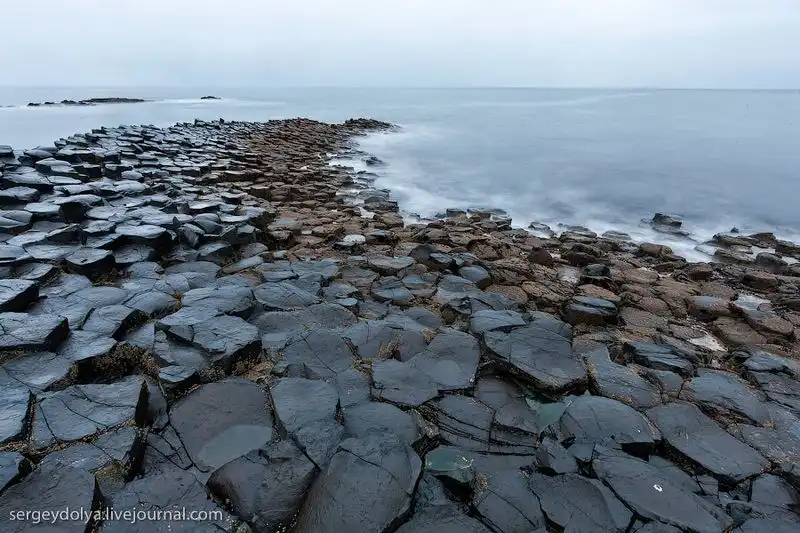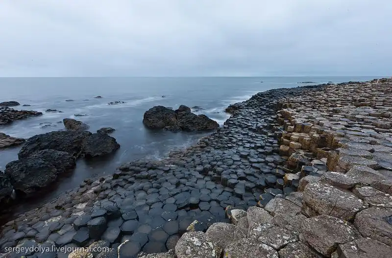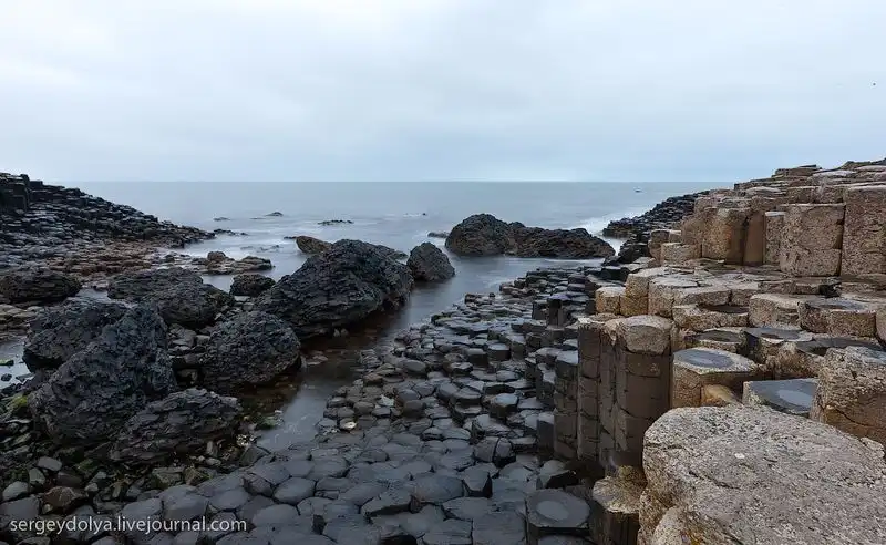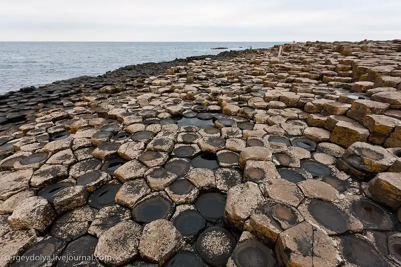 В стародавние времена в Ирландии жил добрый великан Фин Мак Кул со своей женой Уной, а через пролив от него, в Шотландии, жил злой великан Бенадонна. Шотландец постоянно задевал и обижал ирландца. В один из дней Фин Мак Кул крикнул Бенадонне: "Если бы я умел плавать то переплыл бы пролив за 2 минуты и навалял бы тебе по самое не балуйся!" Но плавать он не умел. Тогда ирландец решил построить мост через пролив. Семь дней и ночей он не смыкал глаз, таскал огромные каменные стержни в море и построил мост через пролив. Под конец он очень устал и подумал: "Прежде чем биться с Бенадонной я должен хорошенько отдохнуть" и пошел спать. В это время шотландский великан увидел мост и прибежал по нему в Ирландию. Он стал стучать в дверь к великану, но Фин Мак Кул крепко спал. Его жена Уна испугалась и придумала хитрость: она запеленала его, как младенца. Открыв дверь она сказала Бенадонне: "Тссссс! У меня младенец спит!" Шотландец посмотрел на "младенца" и подумал: "Если у Фин Мак Кула ребенок такой большой, то какой же он сам?" Испугавшись, Бенадонна убежал обратно в Шотландию, сломав за собой весь мост. До наших дней дошло только самое начало Моста Великанов, состоящее из шестиугольных базальтовых колон, которое является объектом всемирного наследия ЮНЕСКО и одним из чудес природы…