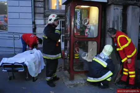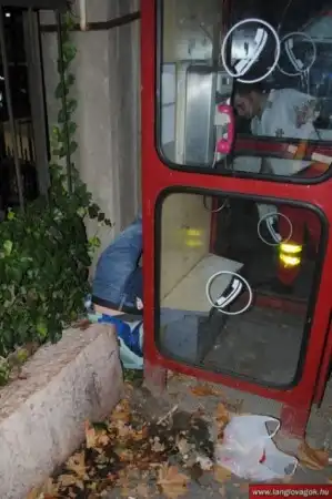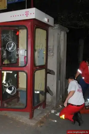 Этого человека нашли торчащим вверх ногами в щели между телефонной будкой и стеной.