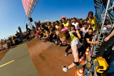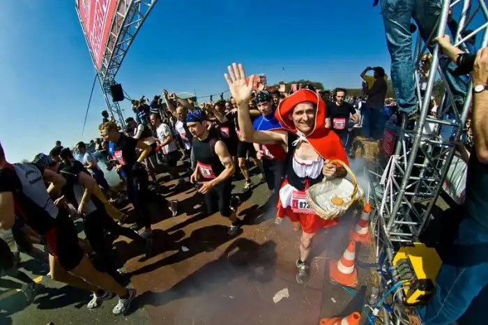 На горнолыжном курорте Бресс во Франции собрались тысячи людей, чтобы принять участие в соревнованиях Fisherman’s Friend Strongmanrun. Ежегодные гонки с препятствиями Fisherman’s Friend Strongmanrun впервые состоялись три года назад в Мюнстере (Германия). Тогда в соревнованиях приняли участие 1600 бегунов. В этом году на Fisherman’s Friend Strongmanrun зарегистрировались более 8900 спортсменов.