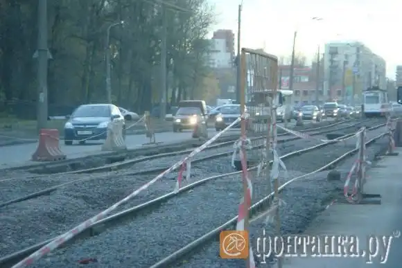 Уже несколько месяцев движение на Ириновском проспекте от проспекта Энергетиков до железнодорожного моста ограничено из-за ремонта трамвайных путей. Был обнаружен интересный факт, увидеть там технику и рабочих трудно, а вот трамваи как ходили, так и ходят по искореженным рельсам. Обратите внимание на профиль рельсов. Желание доехать и безвыходность ситуации, очевидно, притупляют у людей чувство собственной безопасности.