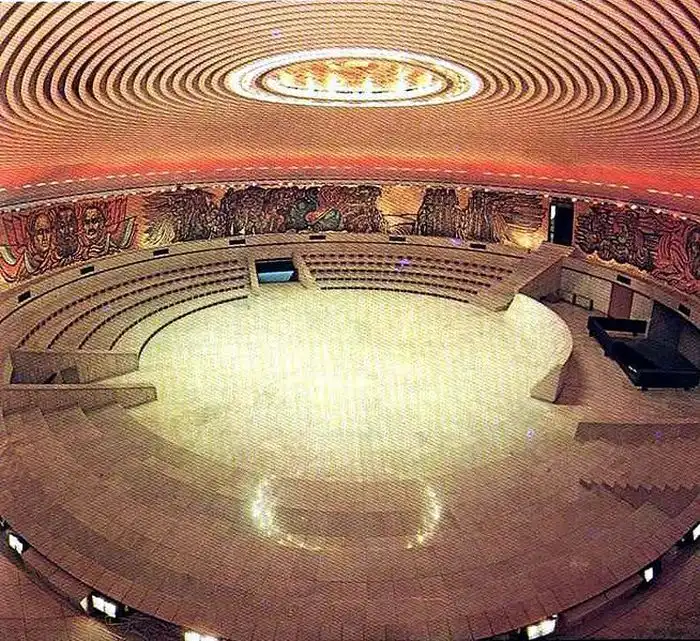 Монумент находится в Болгарии, раньше он был одним из лучших, посвященных строительству коммунизма. Но время прошло, коммунизм забросили и вместе с ним забросили этот монумент, сейчас он стоит один одинешенька.