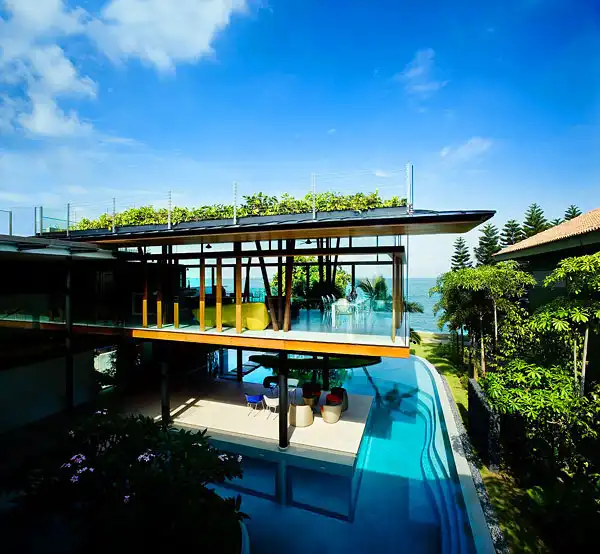 Fish House – это «современный тропический бунгало», который идеально интегрирован в климатические и природные условия данной местности. Естественная вентиляция, большое количества дневного света, стеклянные стены, вид на море, роскошный бассейн – все это стало возможным благодаря наличию красивейшей природы вокруг дома и спокойной атмосфере района в целом.