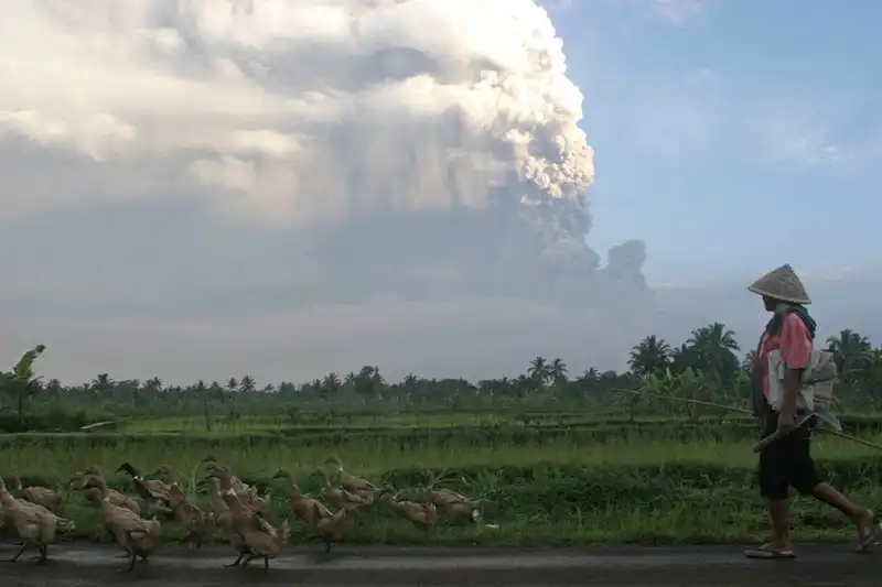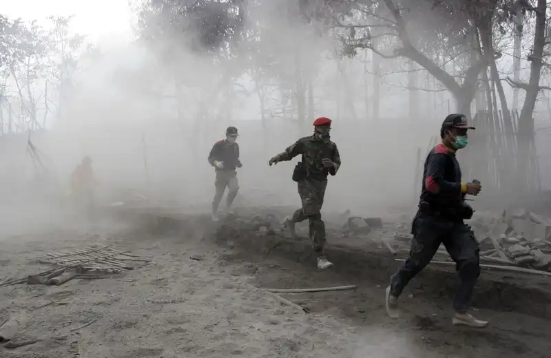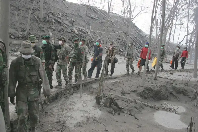 Пятничное извержение – крупнейшее с 1870-ых годов – в полной мере ощутил на себе поселок Бронгганг, находящийся в 15 км от кратера. Солдаты присоединились к спасательным операциям, вытащив из домов 78 тел жителей поселка, улицы которого были покрыты 30-сантиметровым слоем пепла.