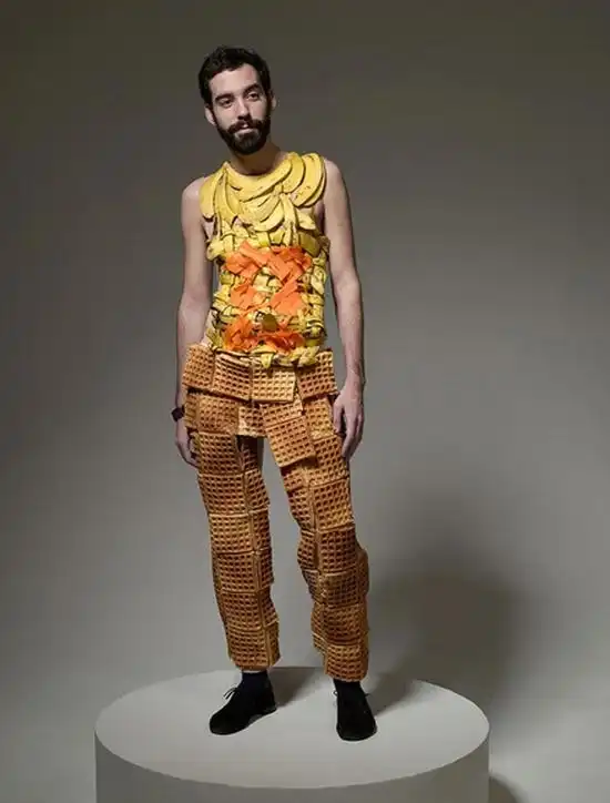 «Мне интересна связь между человеком и тем, что он ест», - рассказывает фотограф Тед Себарезе (Ted Sebarese), автор проекта «Hunger Pains». Каждая модель одета в костюм, полностью сделанный из настоящих продуктов питания. Хлеб, макароны, фрукты – по замыслу автора, каждый наряд символизирует то, что в данный момент хотели бы съесть облаченные в него люди.
