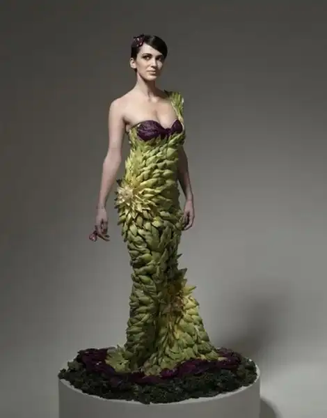 К работе над проектом привлекли пятнадцать дизайнеров, возглавляемых Ami Goodheart. Самым сложным для исполнения оказалось вечернее платье из артишоков: на его создание ушло целых шесть часов, и все это время модели пришлось стоять практически неподвижно. Как здесь не вспомнить всем известную фразу о том, что искусство требует жертв?