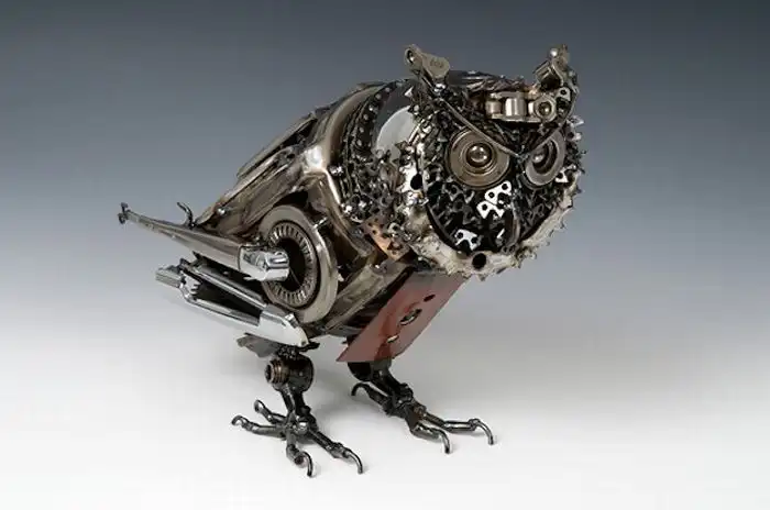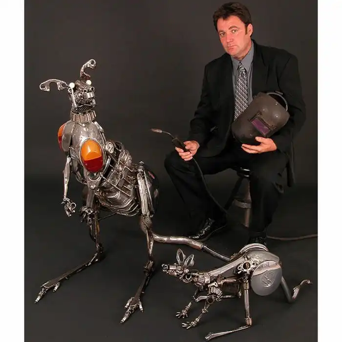 Австралийский художник и скульптор Джеймс Корбетт (James Corbett) создает скульптуры стоимостью несколько десятков тысяч долларов из выброшенных на помойку автомобильных запчастей.