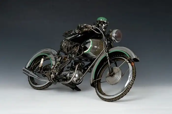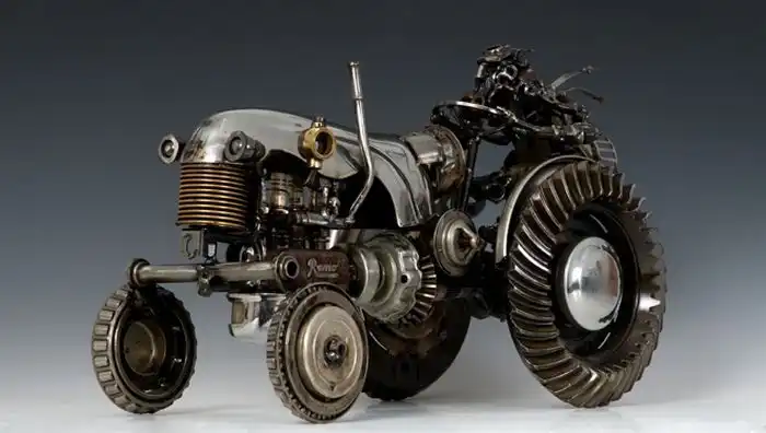 Материалом Джеймсу служат старые шестеренки, радиаторы, свечи зажигания и даже система выхлопа. Неделями он пропадает на свалках, а затем еще несколько недель чистит и полирует найденные запчасти до блеска.