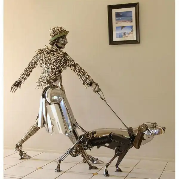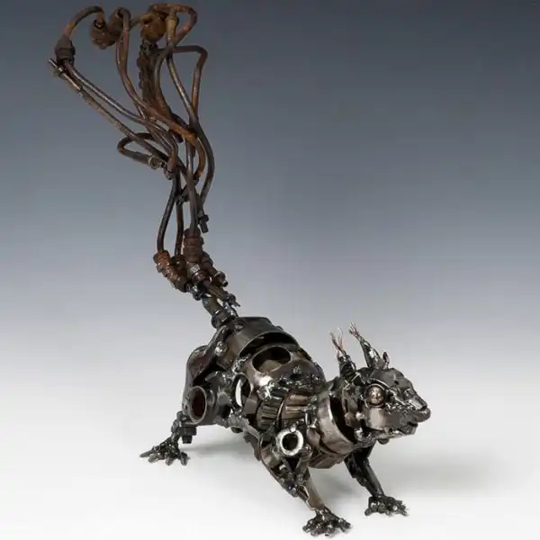 Автор несомненно отлично чувствует форму, очень хорошо передает характер, в скульптурах есть и пластика и динамика, но все же по моему мнению он делает, не что-то сверх выдающееся, чтобы выкладывать десятки тысяч долларов за скульптуры. Хотя возможно имеются ввиду австралийские доллары, но по отношению к рублю они тоже не мало стоят, почти как америкосавские. В любом случае скульптор молодец, сумел превратить кусок железа в кусок золота.