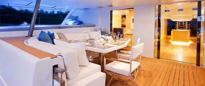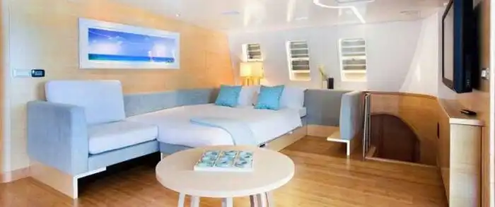 Катамаран вмещает в себя 12 гостей, которым будет прислуживать профессиональная команда.