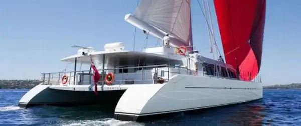 Этот катамаран называется Necker Belle и на его борту есть все, что нужно для путешествия по морю.