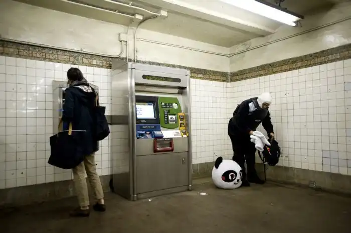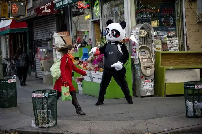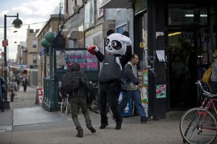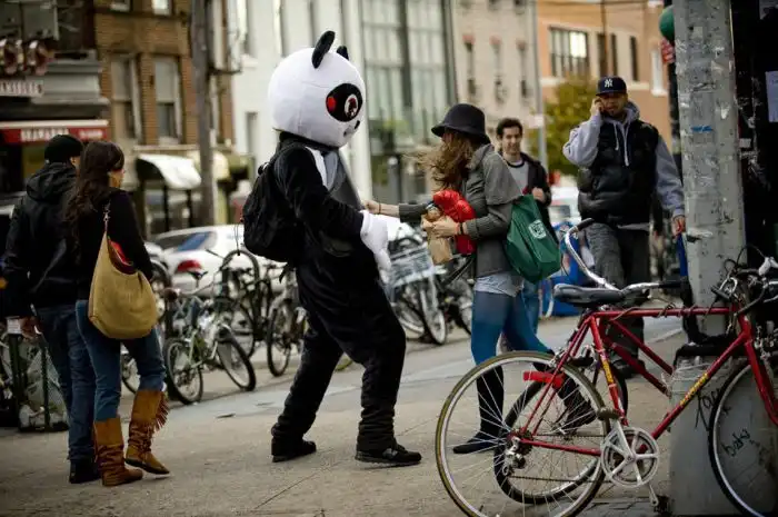 Нейт Хилл, человек в ростовом костюме панды – большеглазой, милой и улыбающейся, ходит по улицам Бруклина и предлагает всем желающим пнуть себя. Желающих не так уж мало… Основная идея подобной деятельности – предоставить людям возможность безвредно для окружающих выплеснуть свою агрессию. Это что-то вроде сеанса терапии. Задолбал начальник? Пни панду! Закончились деньги? Пни панду! Проблемы на личном фронте? Пни-пни-пни панду!