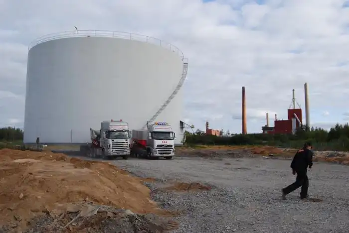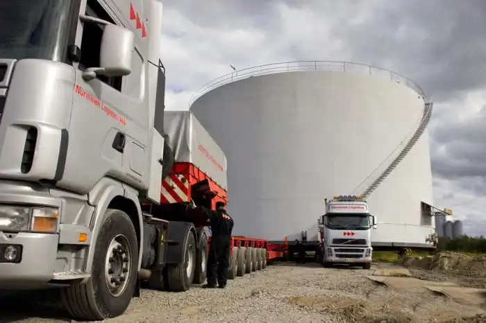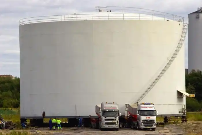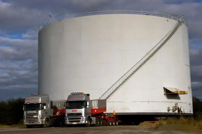 Вы даже и не подозреваете, что перевозят эти грузовики, это огромные резервуары для хранения нефтепродуктов, вес одной такой колбочки составляет 180.000 килограмм.