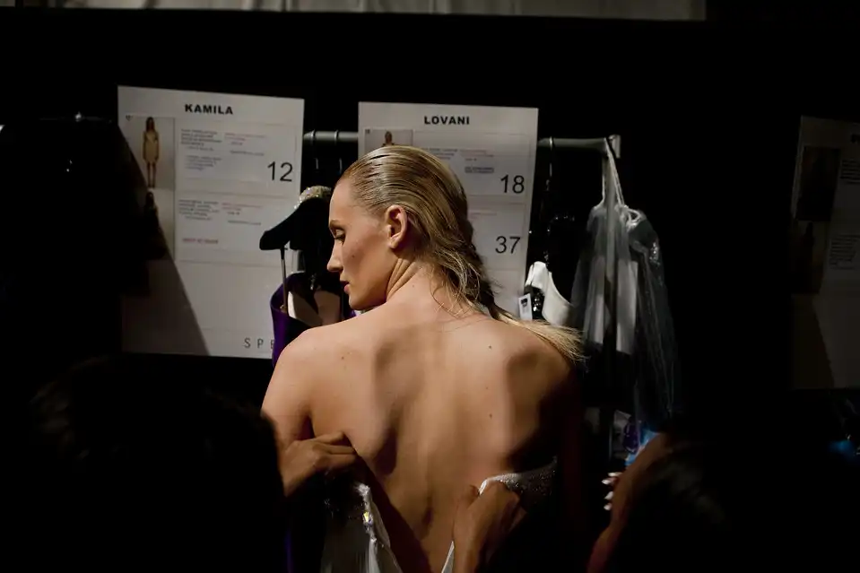 10. Так выглядит коллекция Thakoon за кулисами. Зрители этого не увидят. Сейчас самый разгар подготовки к выходу на подиум.