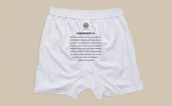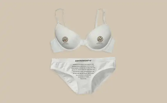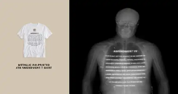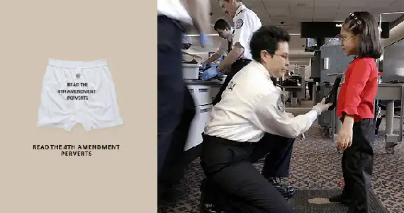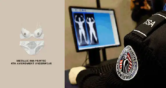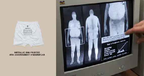 Многих очень сильно раздражает, когда каждый раз при досмотре в аэропорту абсолютно посторонние люди вторгаются в личное пространство и разглядывают ваши части тела на экранах раздевающих сканеров. Специально для таких случаев 4th Amendment Wear создали особую коллекцию нижнего белья. Специальной металлизированной краской на одежду нанесен текст, светящийся в излучении сканеров и, в отдельных случаях, закрывающая интимные места недовольных пассажиров.