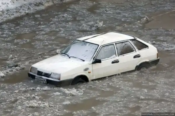В некоторых местах города автомобили начали тонуть, а сам город стоял в огромных пробках.