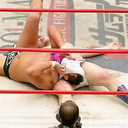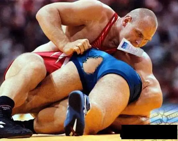 Не могу понять почему голова одного из борющихся оказывается в трусах у другого ...