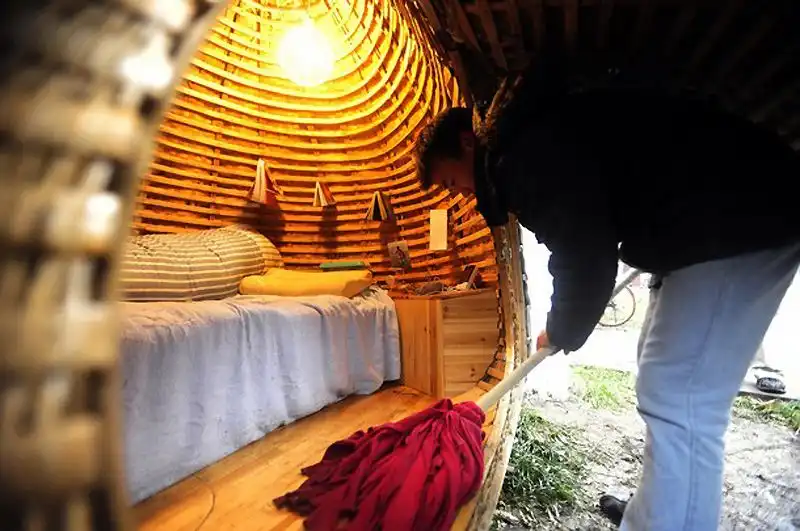 Жилье в столице всегда дорогое. Пекин – не исключение из этого правила. И чтобы сэкономить на жилье хитроумный 24-летний китаец Дай Хайфэй придумал оригинальный способ. Он придумал и построил оригинальное жилье в форме яйца. Экологичное и недорогое в изготовлении жилье решает сразу несколько проблем – не нужно платить за аренду квартиры и за проезд, ведь Дай Хайфэй установил свой домик перед зданием офиса, в котором работает.
