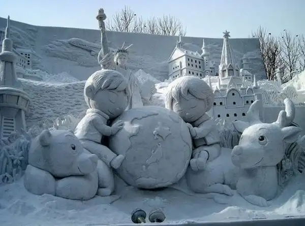 Красивые скульптуры сделанные из снега.