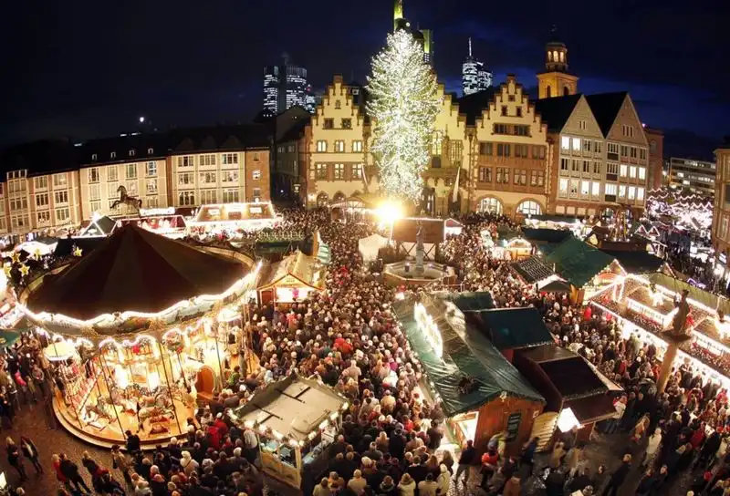 12. Сотни людей собрались на рождественском базаре во Франкфурте, официальное открытие которого состоялось 24 ноября церемонией зажжения огней на елке. (Michael Probst / AP)