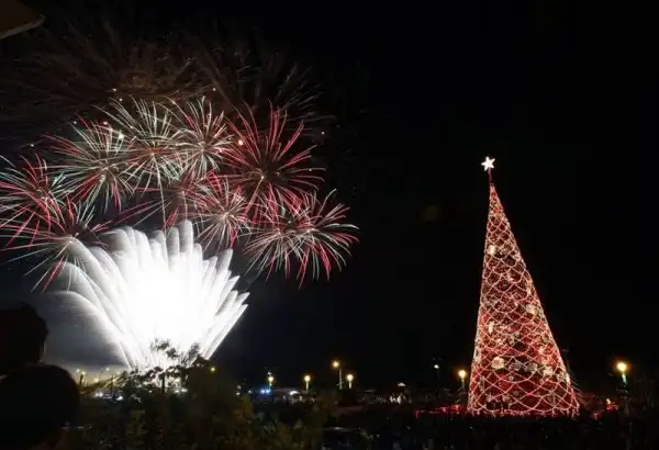 18. Фейерверки озаряют небо возле 37-метровой рождественской елки в Палаван-Сити, Филиппины. Рождественские праздники на Филиппинах, крупнейшем азиатском государстве, где исповедуют католицизм, начинаются 16 декабря и продолжаются до праздника Трех королей в январе. (Romeo Ranoco / Reuters)
