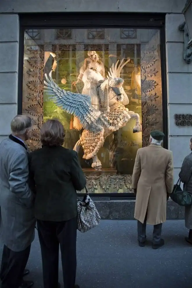11. Прохожие смотрят на великолепную витрину магазина «Bergdorf Goodman», похожую на иллюстрацию к книге или выставку в музее. (Jonathan D. Woods / msnbc.com)