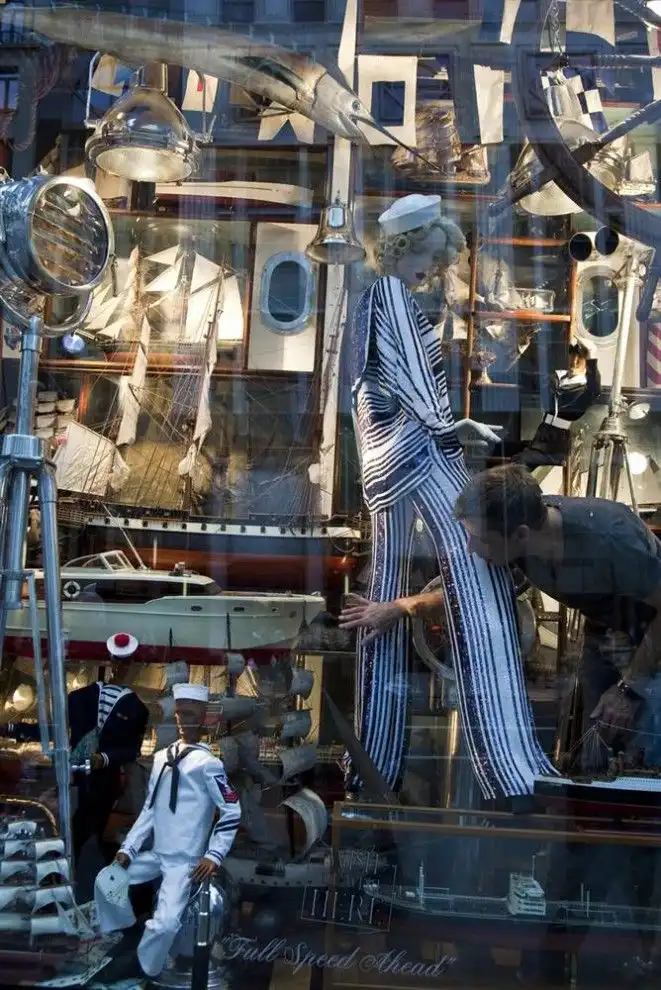 5. Работник магазина «Bergdorf Goodman» поправляет витрину под руководством главного дизайнера Дэвида Бойи.