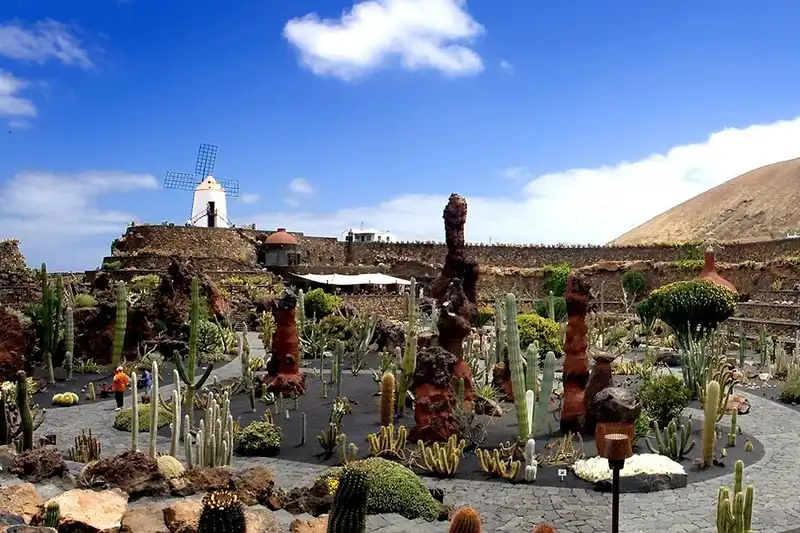 Лансароте, как и остальные острова Канарского архипелага, имеет вулканическое происхождение. Но здесь это, пожалуй, заметно лучше всего, – ведь на этом небольшом островке находится сразу 300 вулканов. В 1730 г на острове одновременно извергалось сразу 30 вулканов, а само извержение продолжалось шесть лет. В результате этого грандиозного извержения почти треть территории всего острова была залита лавой и засыпана пеплом. Поэтому растительная и животная жизнь на острове до сих пор остается довольно скудной. Но это с лихвой компенсируется удивительными по своей красоте и необычности пейзажами острова.