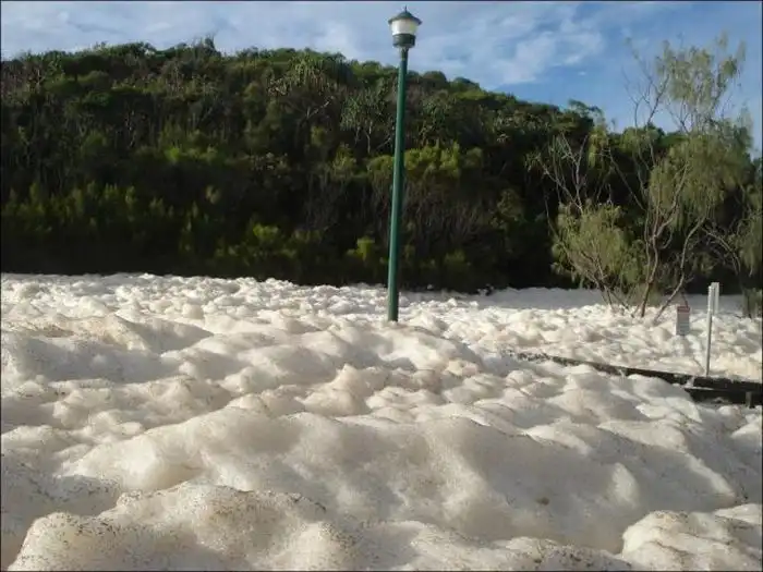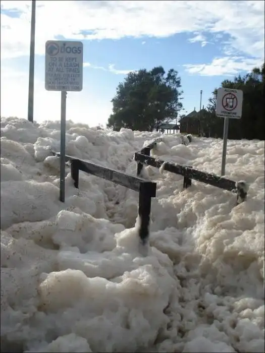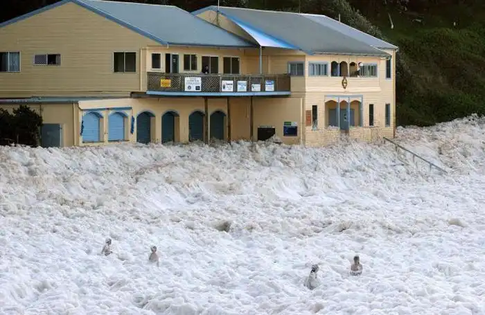 Возле небольшого городка Ямба (Yamba), который находится в штате Новый Южный Уэльс, океан вынес на берег огромное количество пены, которой было так много, что она достигла здания местного клуба спасателей, которое находится в 50 метрах от линии воды. Ученые объясняют происхождение пены достаточно сильными подводными течениями, которые вспенили нечистоты океана в виде солей, химикатов, мертвых растений, животных и морских водорослей, — похожий эффект можно наблюдать в блендере при приготовлении молочного коктейля. Смотритель клуба спасателей Стив Боди (Steve Body) утверждает, что видел нечто похожее в мае 1996 года. По его словам пена могла образоваться в результате попадания большого количества пресной воды из рек в океан, при смешивании которых и получилась пена.