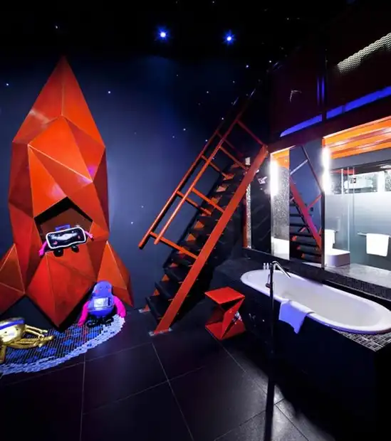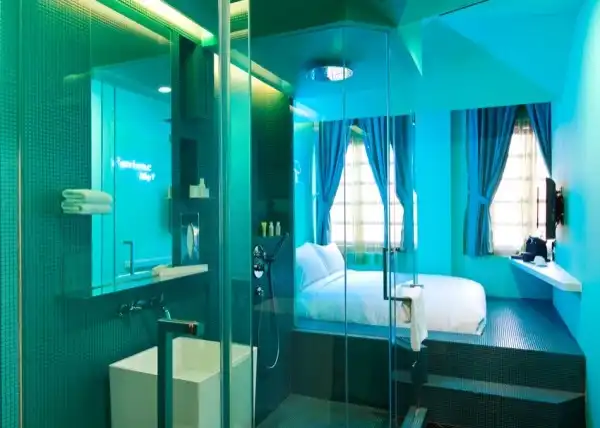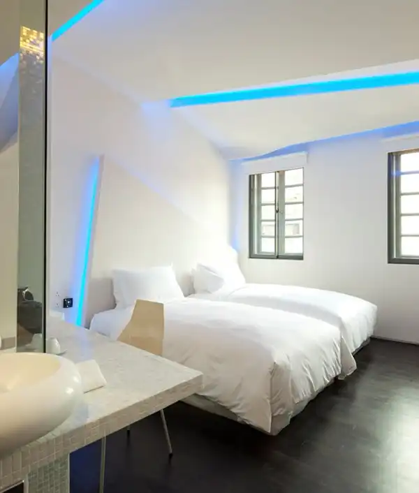 Устроенный в бывшем здании школы, датированном 1920 годом, в квартале Little India в Сингапуре, Wanderlust Hotel предлагает 29 прекрасных номеров, каждый из которых оформлен в уникальном стиле. Проект отеля разработан четырьмя студиями архитектуры: Asylum, :phunk, fFurious и DP Architects. Первый этаж - в промышленном стиле с баром - французским рестораном "Кокотка", второй этаж замахивается на стилистику Пантона с его яркими неоновыми цветами. Третий этаж - черно-белый, четвертый - на тему космической фантастики.