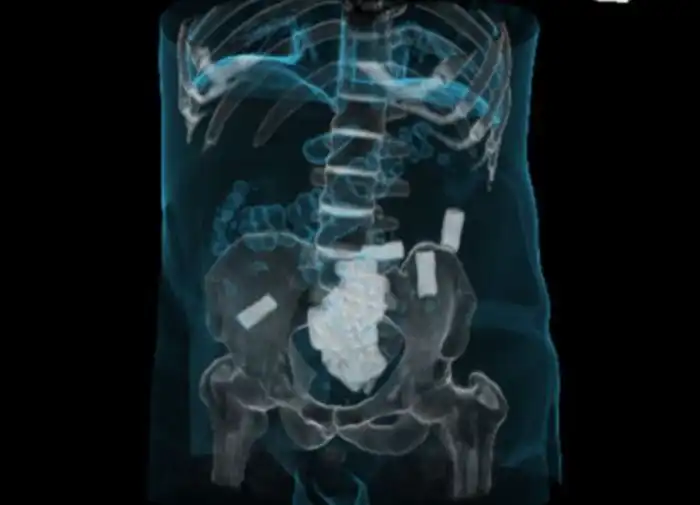 Эти цветные пакетики наркотиков находятся в толстой кишке