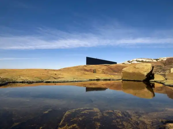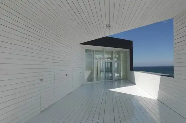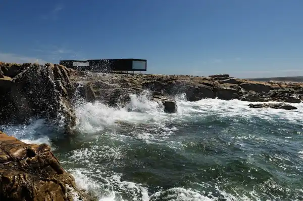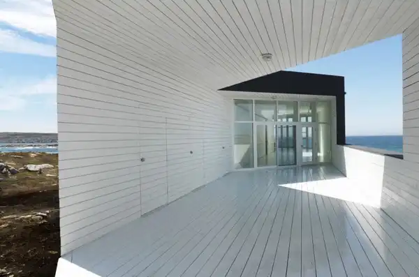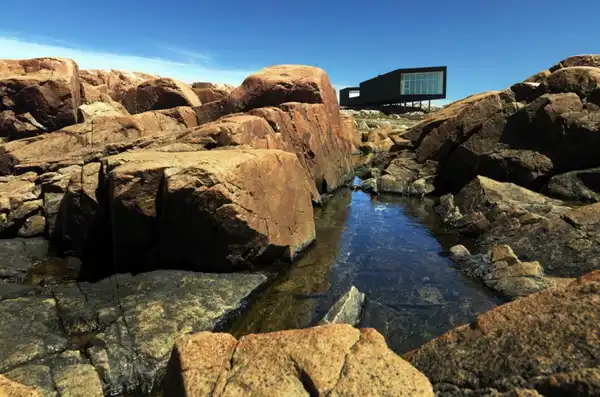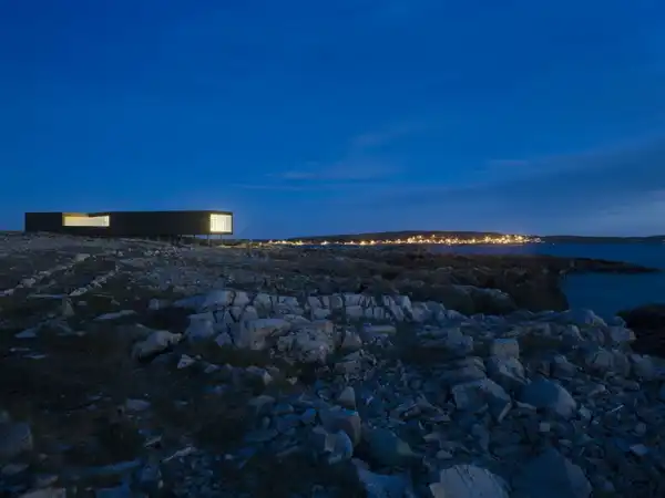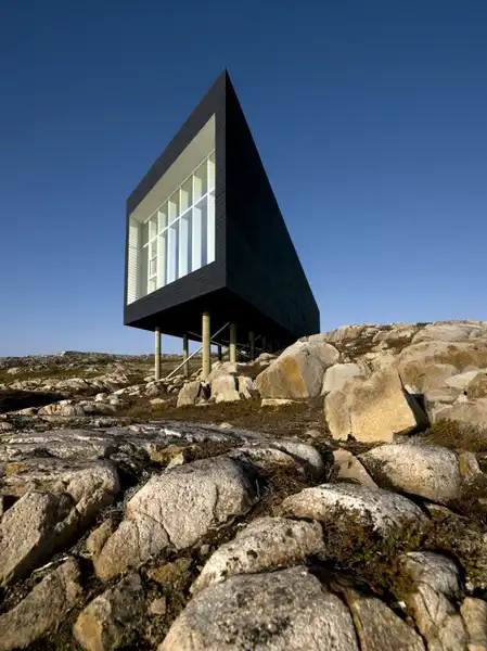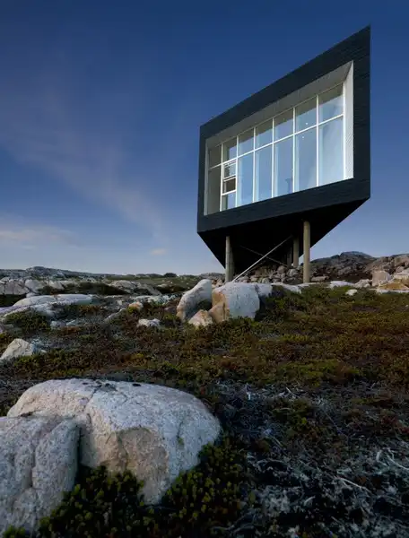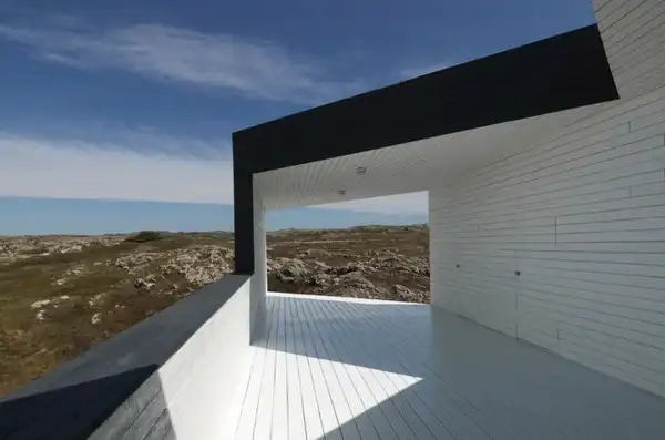 Островная Студия Фого (Fogo Island Studios) - это построенное на краю света оригинальное здание, абсолютно черное снаружи и белое внутри. Остров Фого, который приблизительно 25 км длиной и 14 км шириной и общей площадью 237,71 km2 находится на севере Ньюфаундленда, в Канаде. Дом построила студия Saunders Architecture. Это минималистское жилище с четкими геометрическими линиями для влюбленных в природу и одиночество.