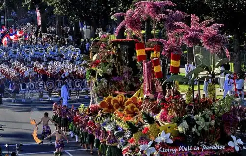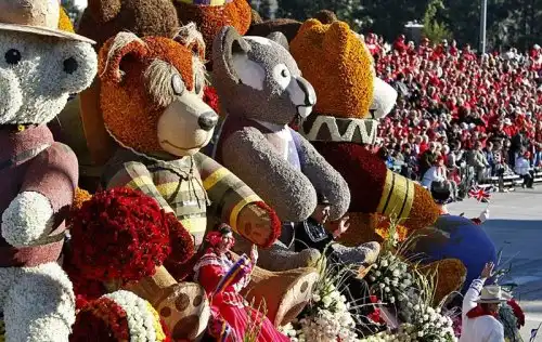 Начиная с 1890 года, Парад Роз превратился из местной скромной церемонии в национальную, поражающую своими масштабами и ничем не уступающую новогодним парадам на Таймс-сквер.