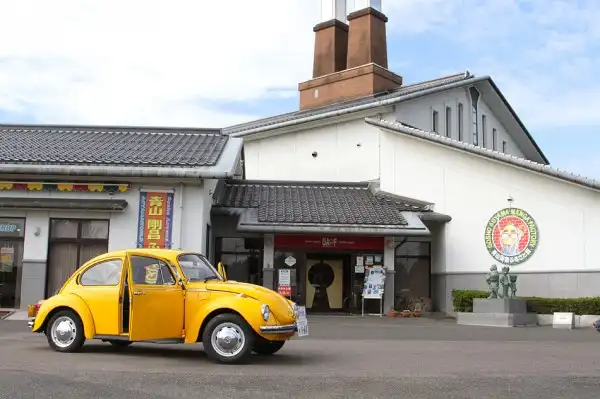 У входа в музей стоит желтый "жук", на котором ездит "детектив Конан"