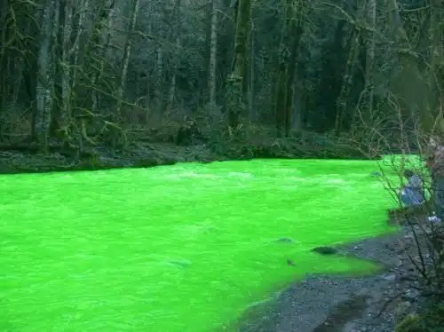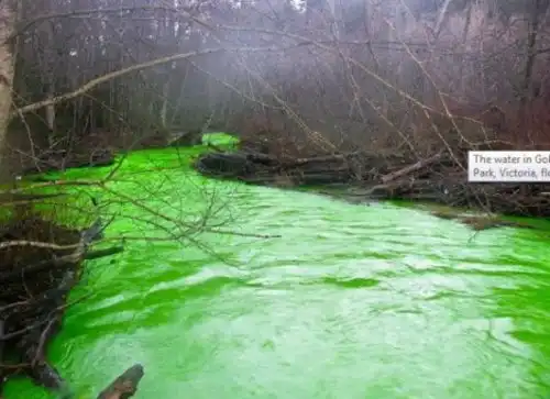 Случай произошел 29 декабря 2010 года, когда внезапно воды реки, протекающей вдоль парка Голдстрим, стали неоново-зелеными. Нет, это был вовсе не обман зрения. Спустя час река вновь приняла свой естественный цвет.