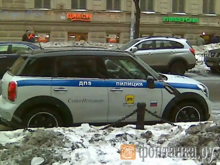 автопарка правоохранительных органов, а надписи на ней гласят: «ДПS» и «Пилиция». Примечательно, что