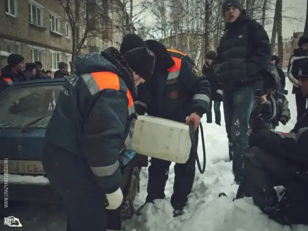 Доблестные спасатели заправили машину, с буквой У, за рулём находилась девушка-ветеринар